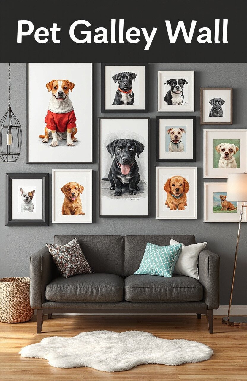 Create a gallery wall dedicated to your pet. Mix different types of art, like photos, paintings, and drawings.