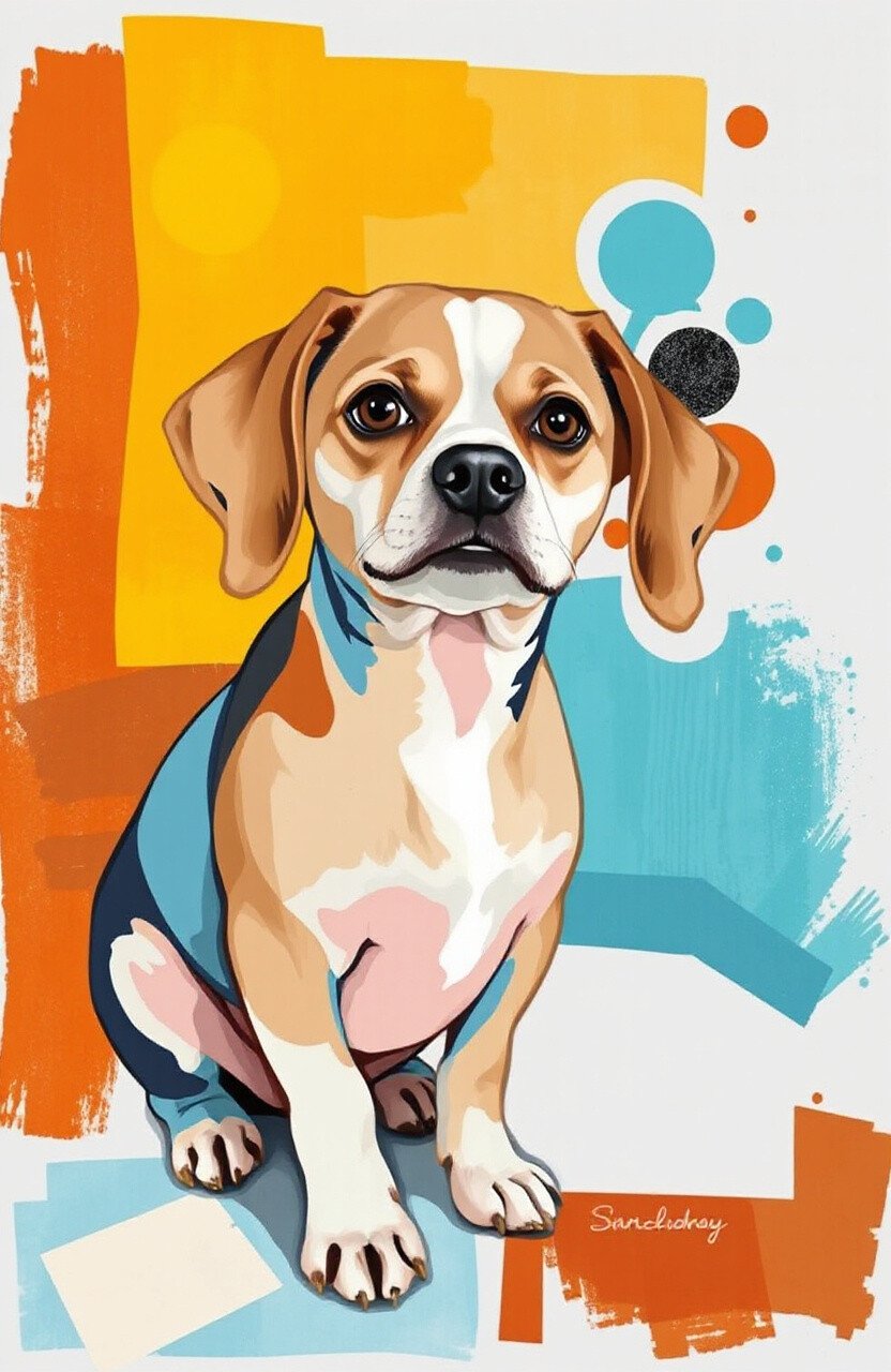 Abstract art focuses on shapes and colors. An abstract piece inspired by your pet can add an artistic flair.