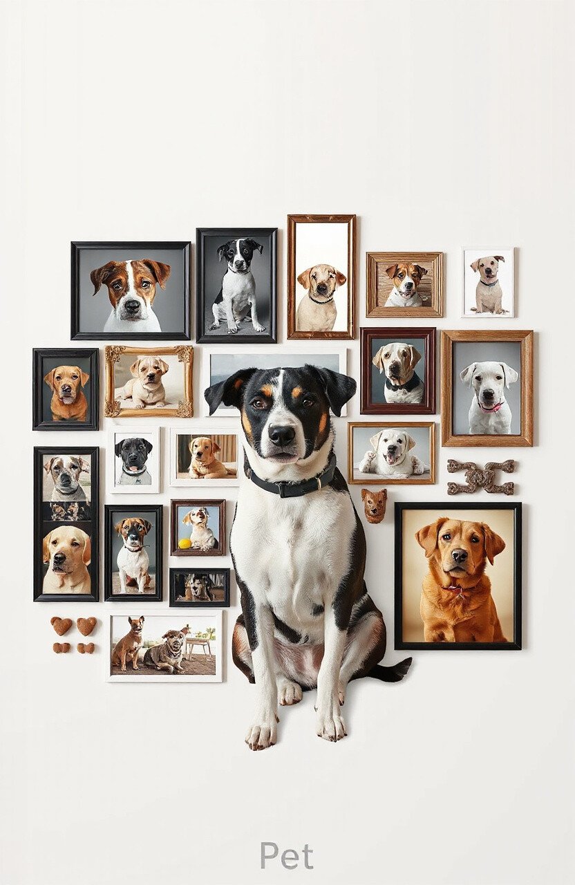 Create a collage of your pet’s photos. Mix candid shots with playful poses. This idea is all about celebrating the many sides of your pet.