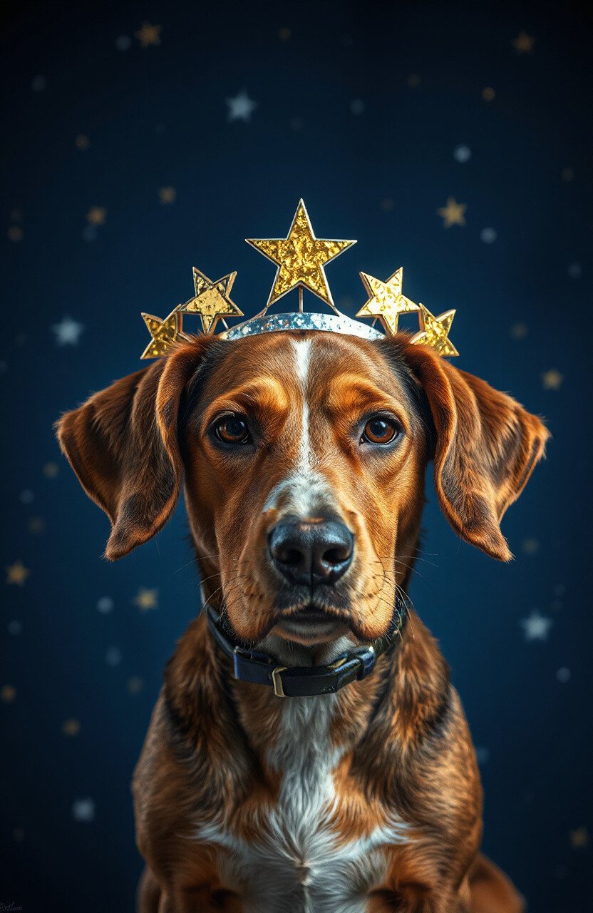 Your pet will look like they just fell from the sky with a crown that twinkles like the stars. Use metallic paper or foil to create star shapes.