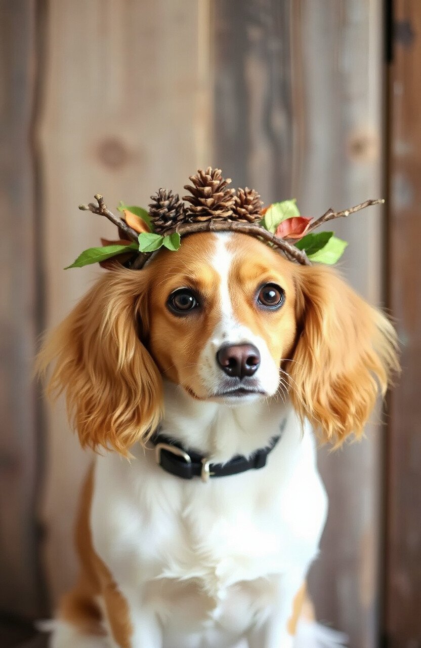 If your pet loves nature, a rustic woodland crown will suit them perfectly. Use twigs, leaves, and small pinecones for an earthy feel.
