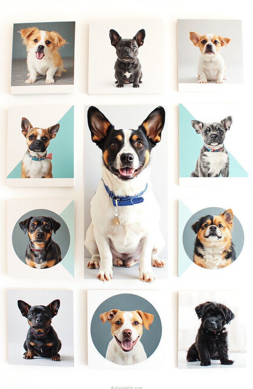 This style is trendy and visually interesting, offering a fresh take on traditional pet galleries. It’s a creative way to play with shapes and colors while showcasing your pet.