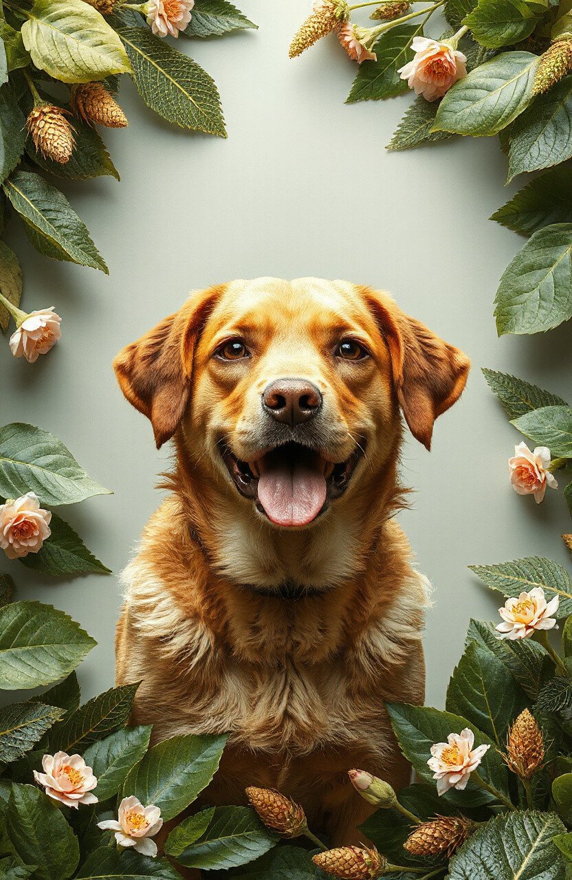 Bring the outdoors in with nature-inspired pet art. Use elements like leaves, flowers, or natural textures to frame your pet photos.