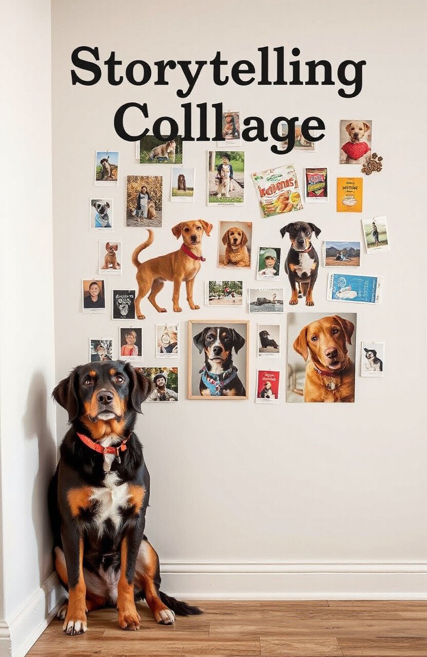 Imagine a wall that narrates tales of your pet’s adventures. Use photos, tickets from vet visits, or snippets of their favorite treats’ packaging to create a collage.