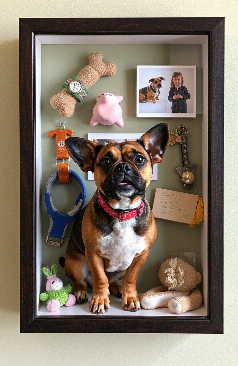 Think of a shadow box as a mini museum dedicated to your pet. Fill it with keepsakes like collars, toys, or photos.