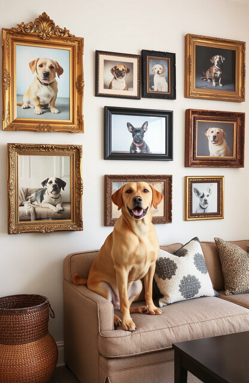 Imagine your pet’s photos framed in vintage frames, each one a little window into the past. Scour thrift stores or flea markets for unique frames that add character and charm.