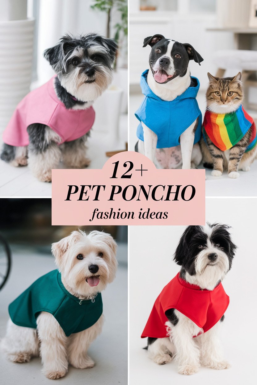 For a modern twist, try a poncho with geometric patterns. Triangles, squares, and hexagons create a bold, eye-catching design. This style is perfect for pets with a contemporary flair.