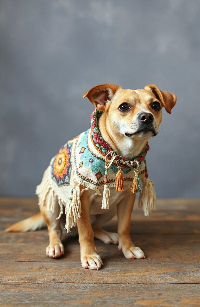 For the free-spirited pet, a boho chic poncho offers a blend of eclectic patterns and earthy tones. This style is all about expressing individuality and creativity. Think tassels, fringe, and unique prints that make your pet a walking piece of art.