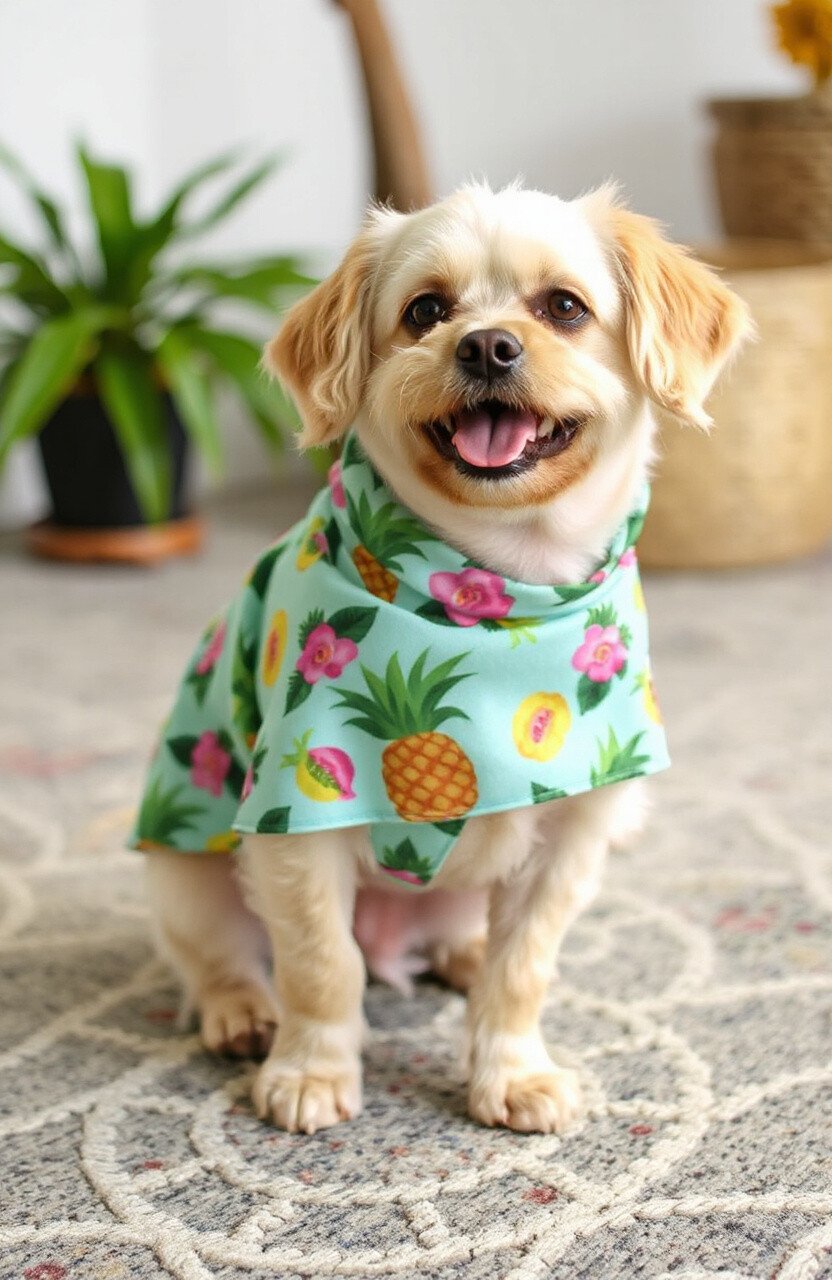 Bring the vacation vibes home with a tropical-themed poncho. This style is all about fun, bright colors, and exotic prints that remind you of a sunny beach day. Your pet will look ready for a holiday in this vibrant attire!