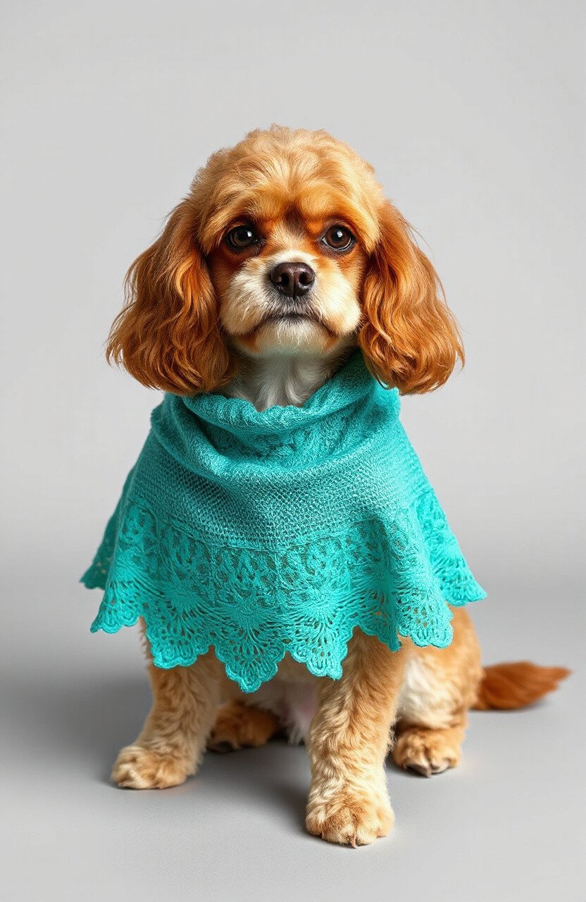 Transform your pet into a picture of refinement with a lace poncho. Lace adds a touch of elegance and is perfect for formal occasions or when you want your pet to look extra special. Imagine them gracefully strutting around in delicate lace!