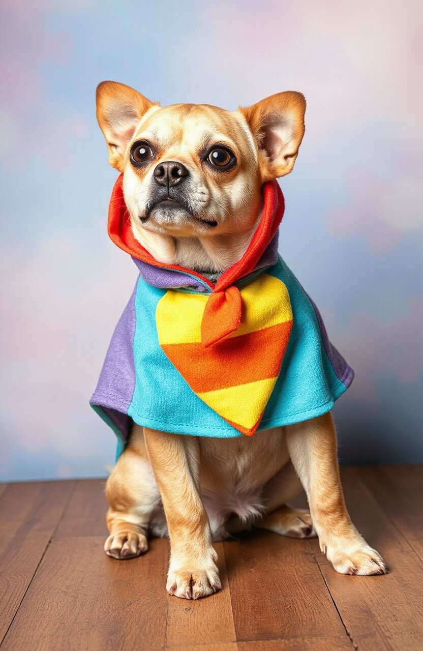 When picking a rainbow poncho, look for one that’s lightweight yet warm, especially for cooler days. The variety of colors can complement any pet’s personality and make them the star of the show. These ponchos typically cost about $25 to $50.