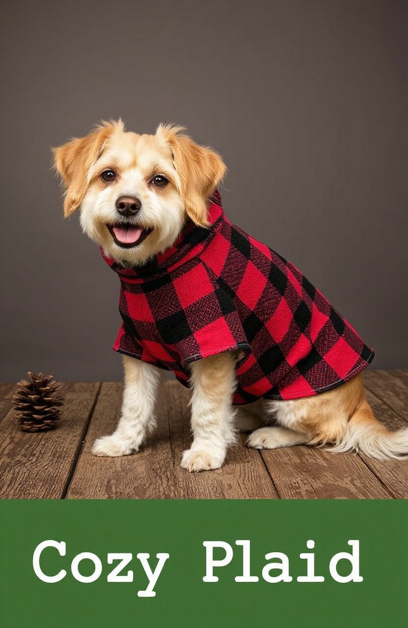 Give your pet a touch of countryside charm with a cozy plaid poncho. Plaid patterns are perfect for a relaxed, rustic look, making them ideal for outdoor adventures or cozy evenings by the fireplace. Who wouldn’t love a snuggle buddy in plaid?