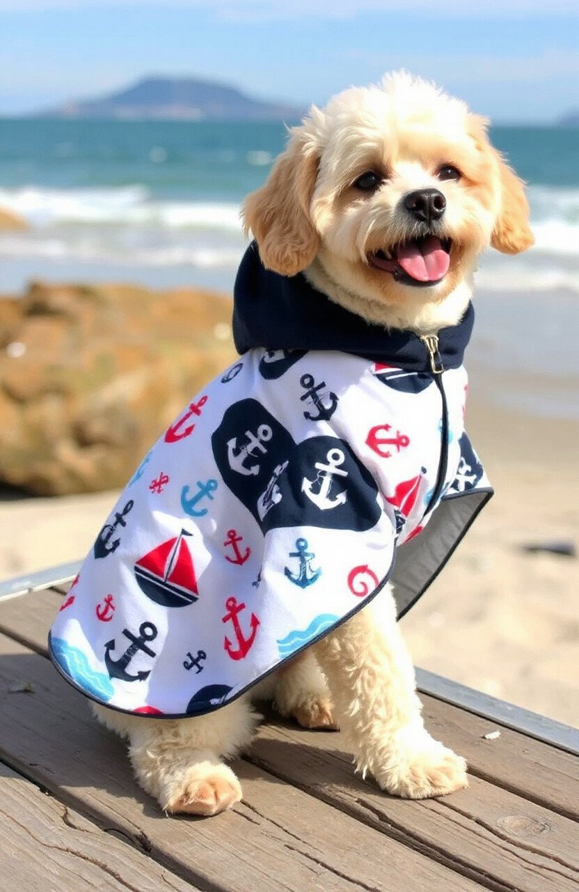 Set sail with a nautical-themed poncho featuring anchors, ships, and ocean waves. This style is perfect for pets who love the water or simply enjoy a day at the beach. Nautical designs are classic and always in vogue.