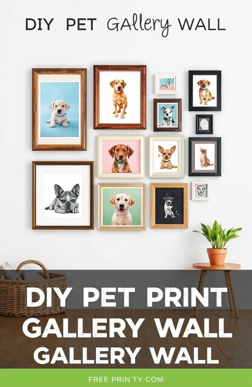 Create a gallery wall dedicated to your pet using a mix of photos, drawings, and prints. This is a highly personalized and creative project that allows you to showcase your pet in various forms.