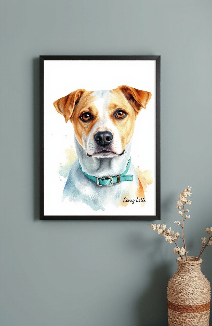 Watercolor portraits are a beautiful way to add a splash of color and elegance to your walls. The soft brush strokes and vibrant colors can capture your pet’s personality perfectly. These portraits can be customized with your pet’s name or a short quote.