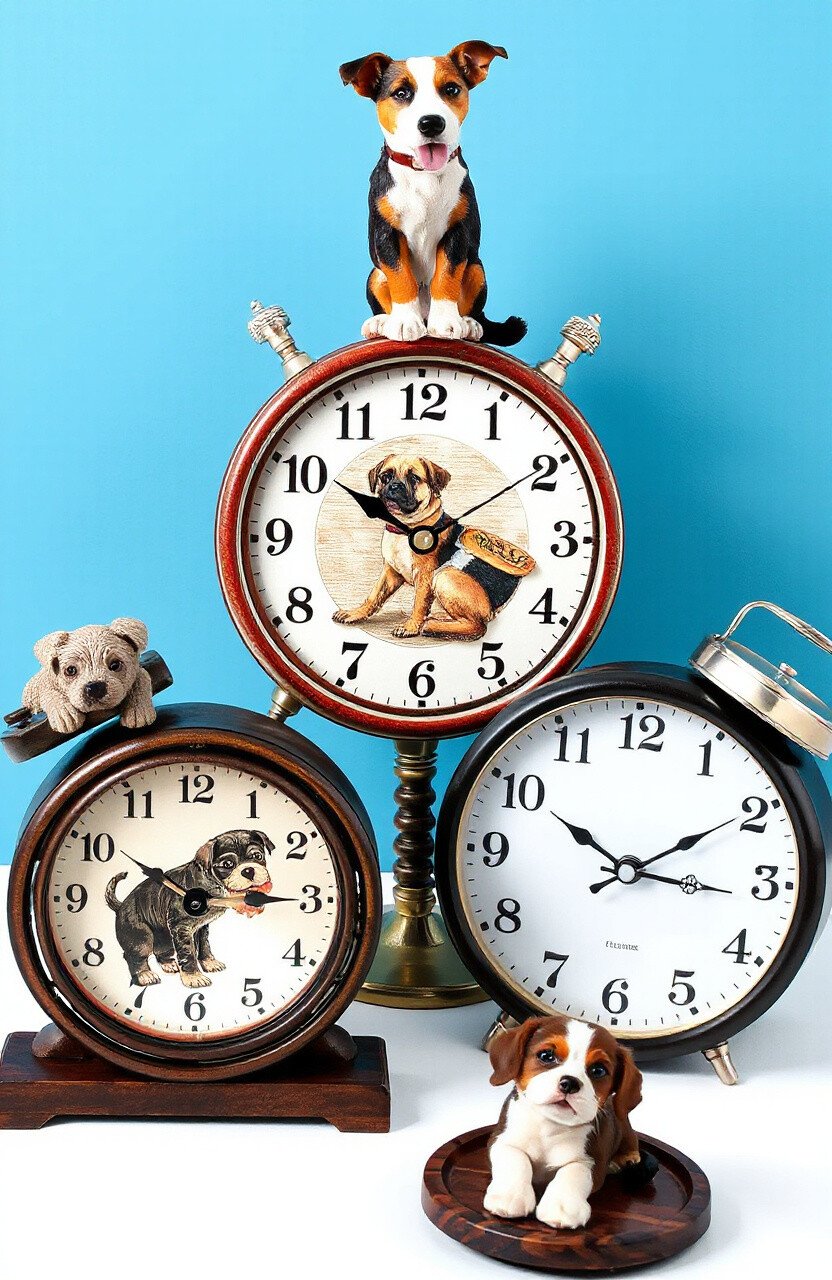 Keep time in style with pet-themed clocks. These clocks come in various designs, from whimsical to elegant. They are a delightful addition to any room and serve a practical purpose.
