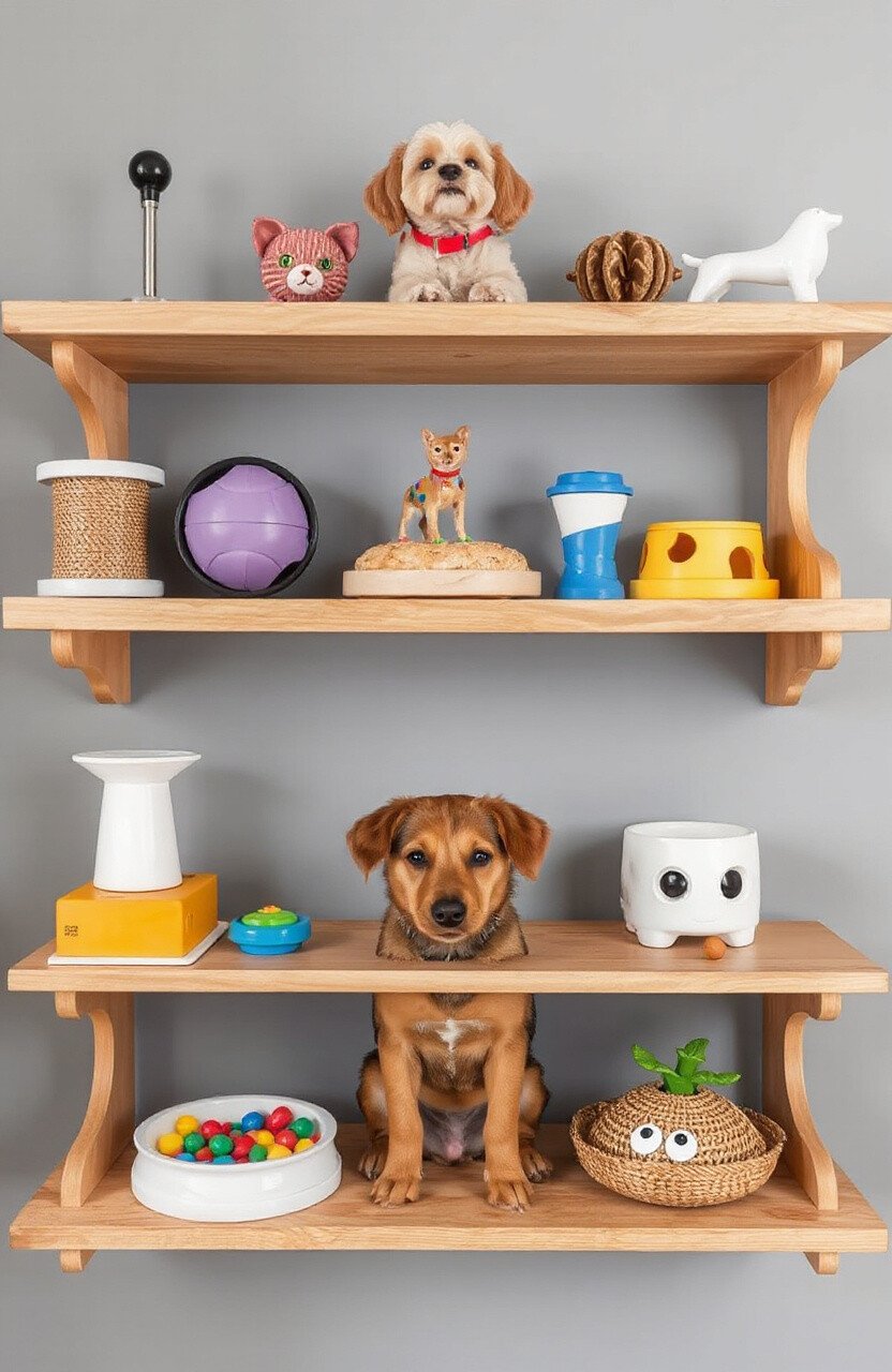 Create a shelf that’s not just for looks but also for fun! An interactive pet shelf can include toys or puzzles that engage your pet. It’s a playful way to keep them entertained and part of your decor.