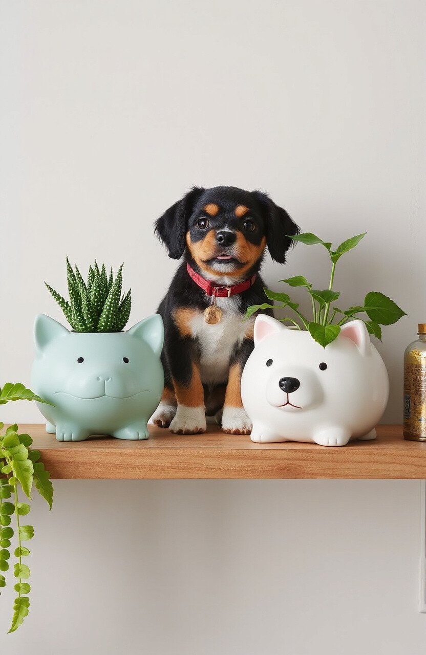 Bring a bit of nature indoors with pet-themed planters. These can be shaped like your favorite animal or feature pet motifs. Fill them with your favorite plants to add a touch of greenery to your shelf.