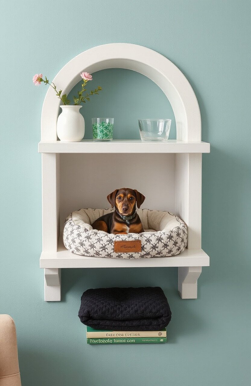 Why not create a cozy nook for your pet right on your shelf? A small pet bed on a lower shelf can be both functional and adorable. It gives your pet a special place to relax while being part of your decor.