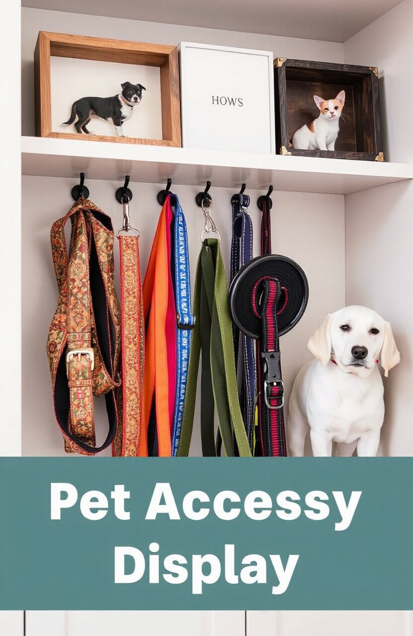 Turn your pet’s accessories into a stylish display. Collars, leashes, and harnesses can be hung on hooks or displayed in shadow boxes. It’s a creative way to keep these items organized and within reach.