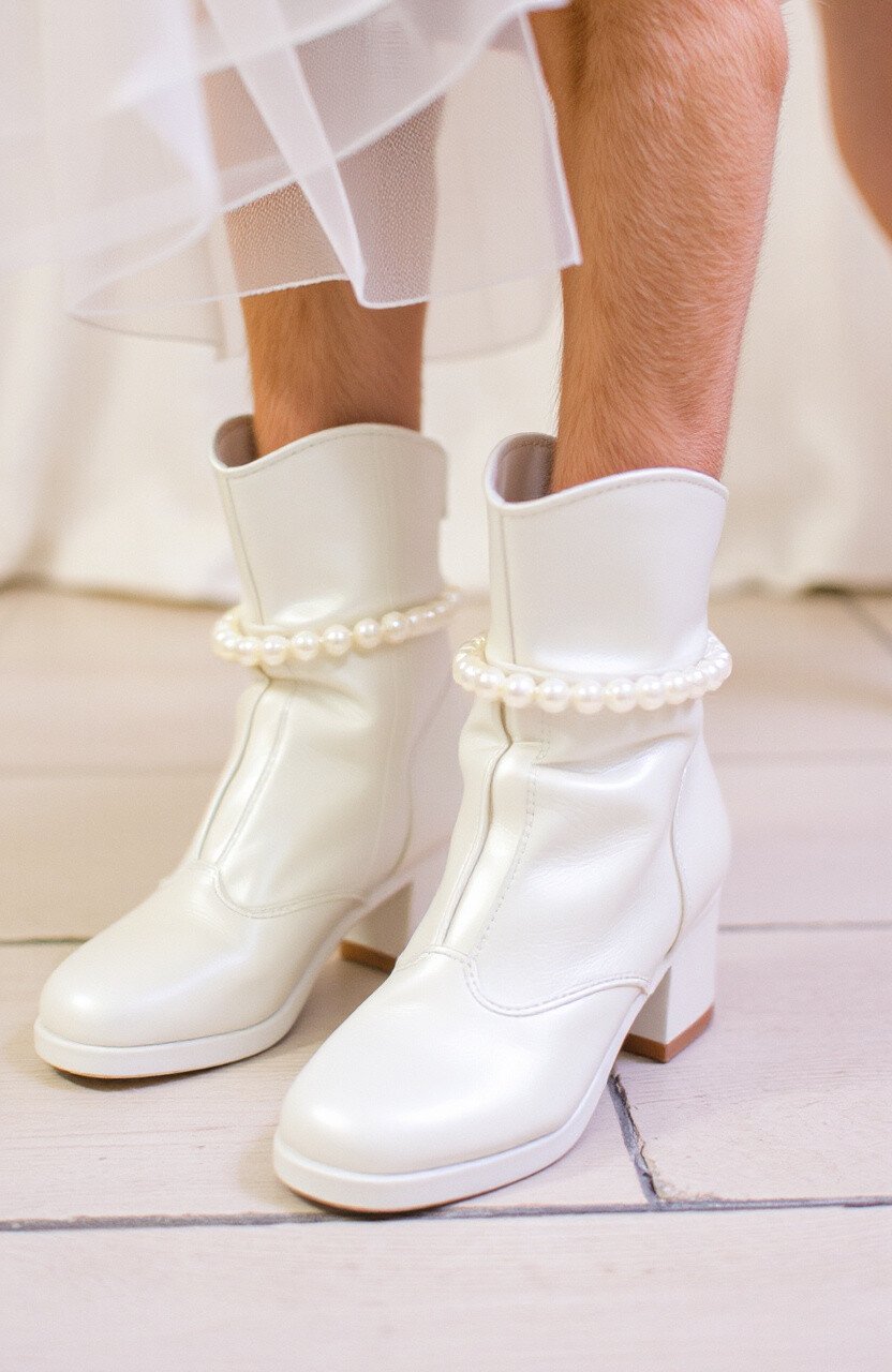 These pearly white boots are the epitome of elegance. With a sleek design and subtle sheen, they’re perfect for weddings or other formal occasions.