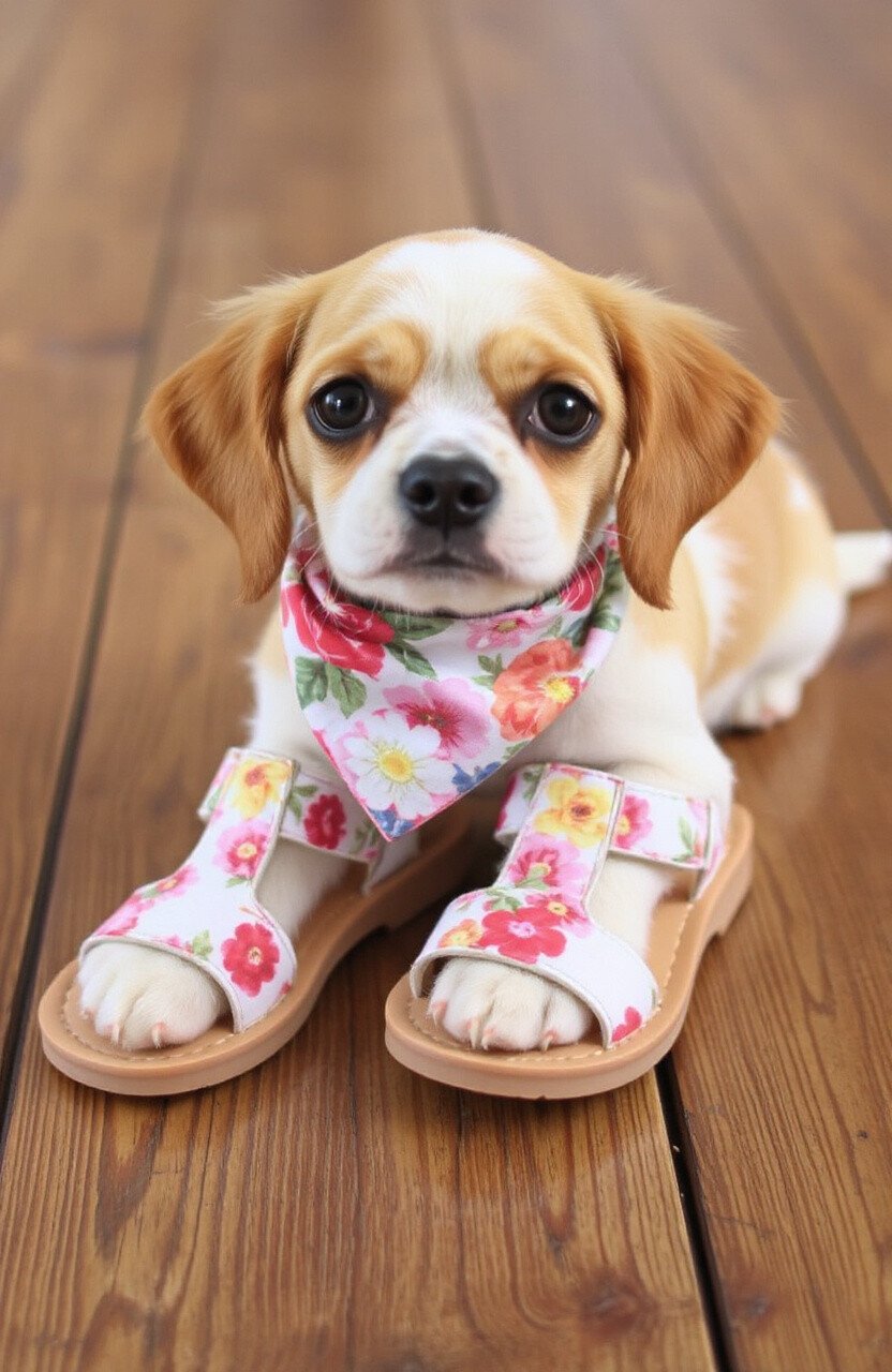 Step into spring with these delightful floral sandals. The open-toe design is perfect for warmer days, allowing your dog’s paws to breathe while still offering protection.