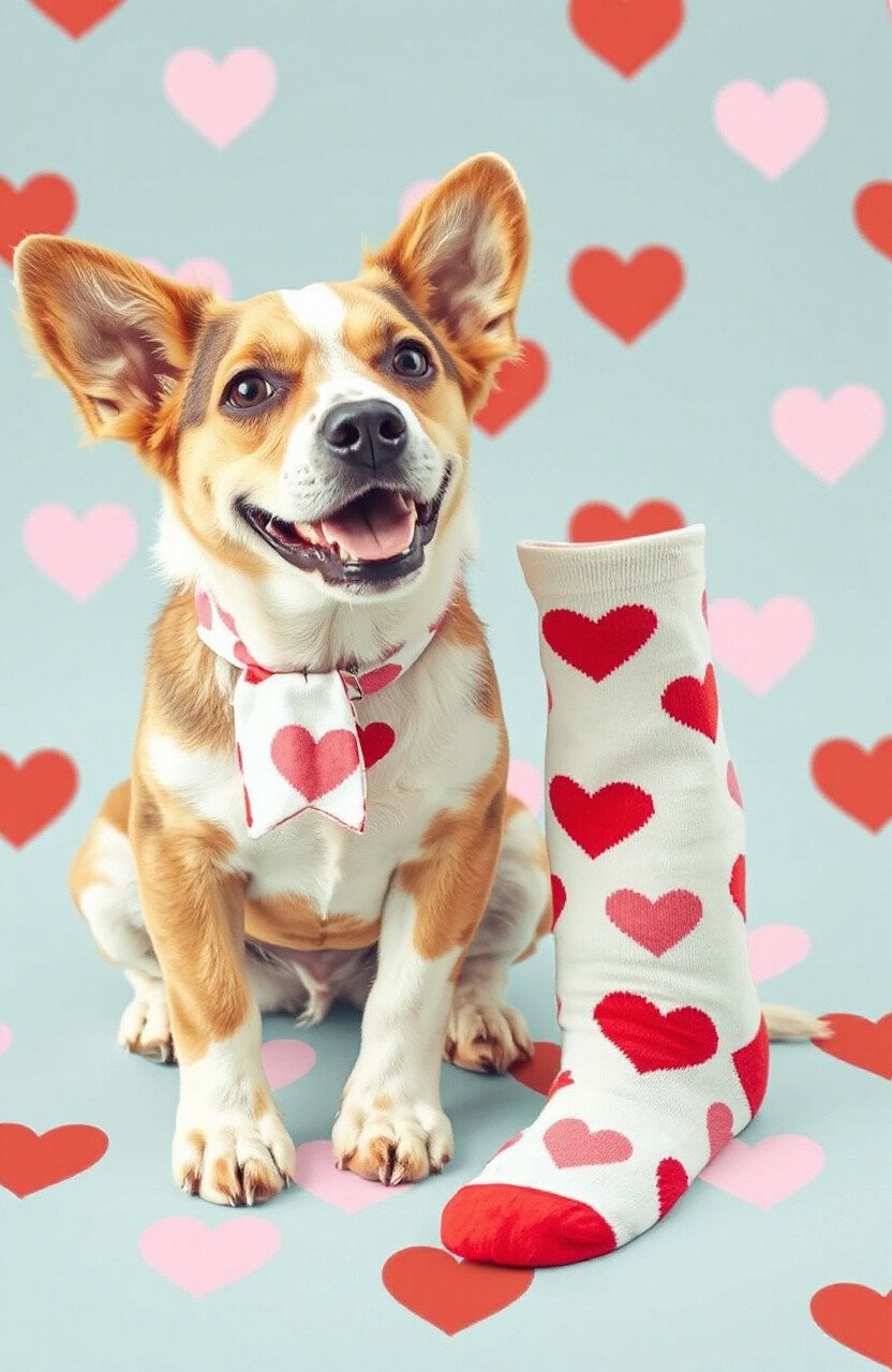 Heart patterns are sweet and charming. Imagine matching heart-themed socks for you and your beloved pet.
