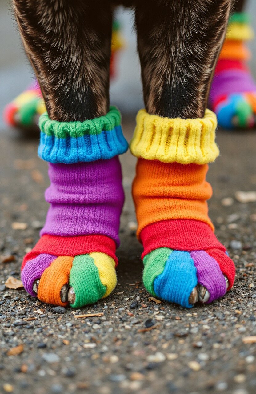 Who wouldn’t love a burst of color on a rainy day? Rainbow Paws socks bring a kaleidoscope of hues to your pet’s feet. They’re perfect for adding a splash of joy to every step your furry friend takes.