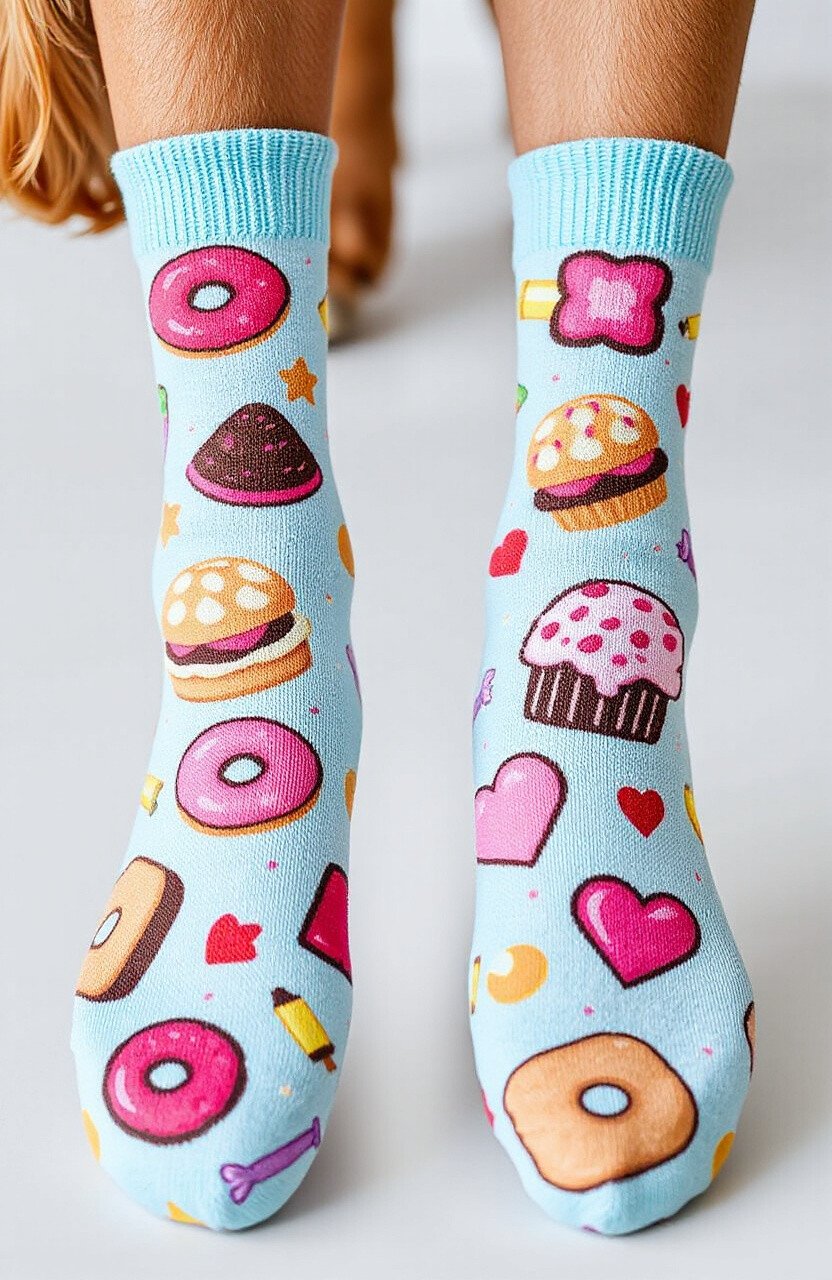 Indulge your pet with Sweet Treats socks. Donuts, cupcakes, and candies make for a delicious design.