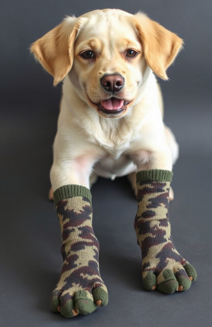 For the adventurous pet, Camo Paws socks offer a rugged look. The camouflage print is perfect for pets who love the wild.