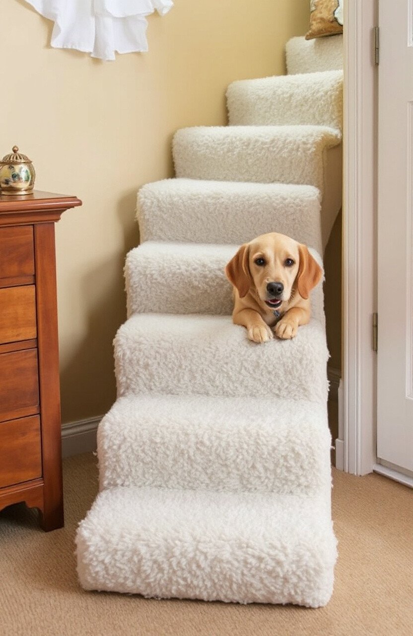 These stairs are like a cloud made just for pets. Soft, plush material ensures your pet will enjoy every step.