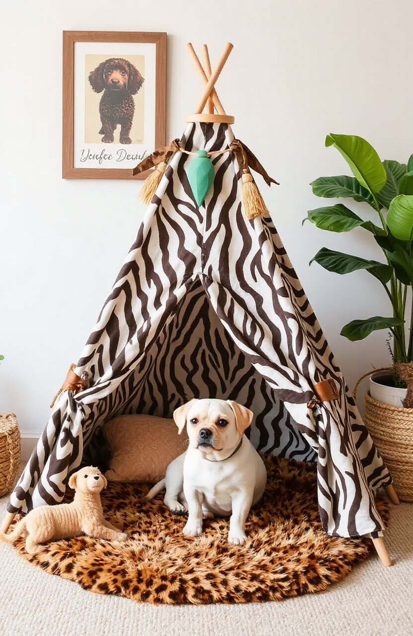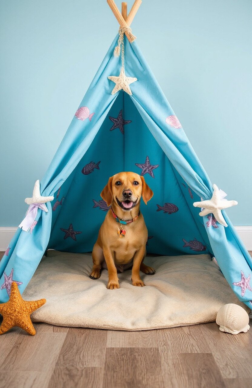 Let your pet dive into an ocean of fun with an under the sea teepee. Use ocean-blue fabrics and sea creature motifs. Add starfish or seashell decorations for extra charm.