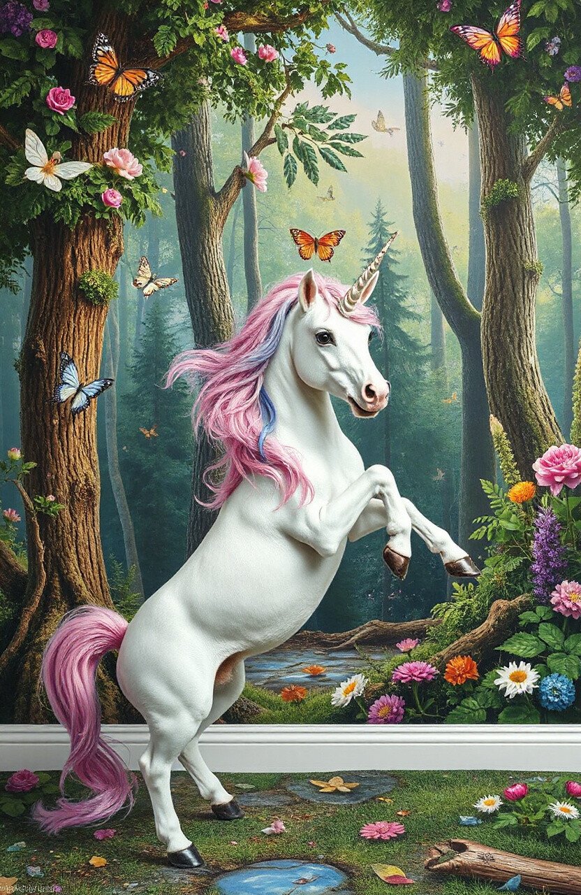 Step into a magical world with wallpaper featuring mythical creatures like unicorns and fairies. It’s like having a storybook come to life on your walls!
