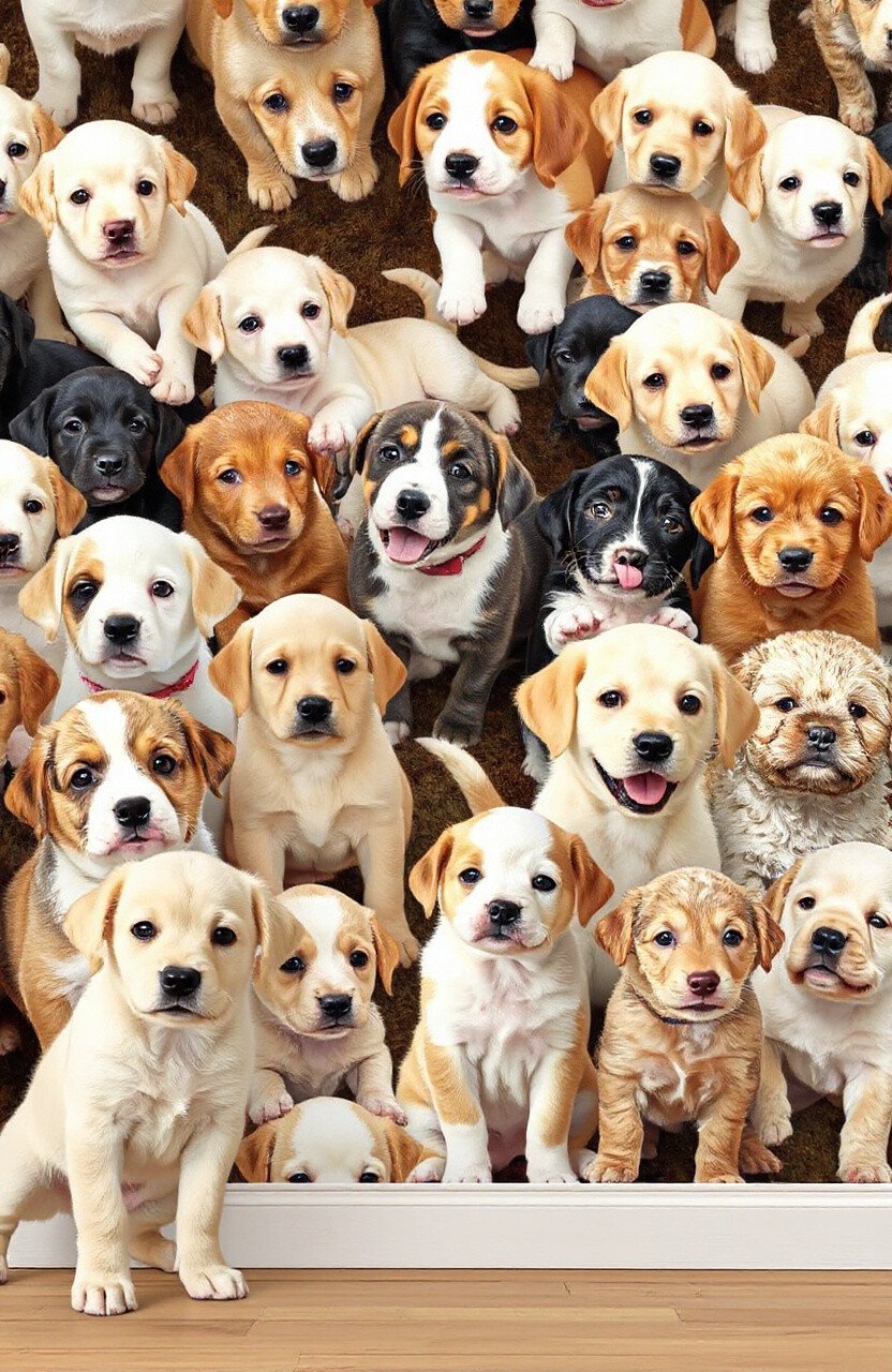 Imagine a parade of playful puppies across your walls. Puppies in different breeds and colors, each one cuter than the last. This wallpaper idea brings a sense of joy and innocence to any room.
