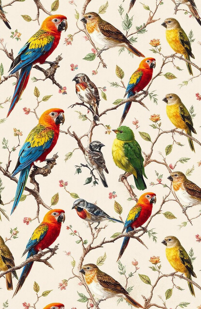 Fill your space with the beauty and grace of birds with this elegant wallpaper idea. Imagine delicate feathers and bird silhouettes against a soft, tranquil background.