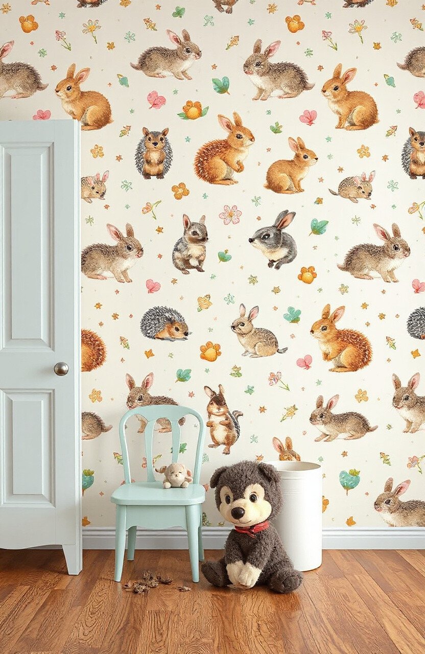 Fill your space with the charm of small, adorable animals like bunnies, hedgehogs, and squirrels. This wallpaper idea is all about cuteness overload!
