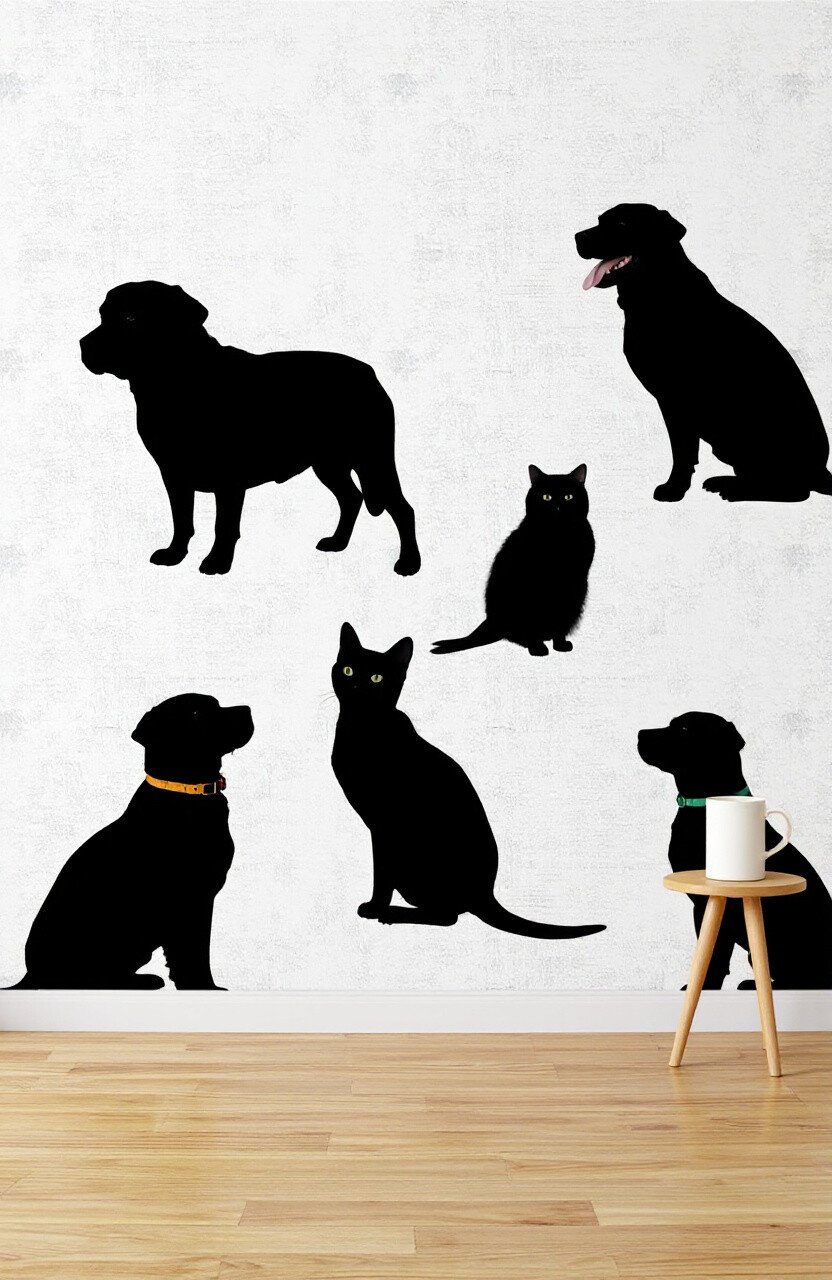 Celebrate the unique shape and form of your favorite pets with silhouette wallpaper. Imagine sleek outlines of dogs, cats, or birds against a textured background.