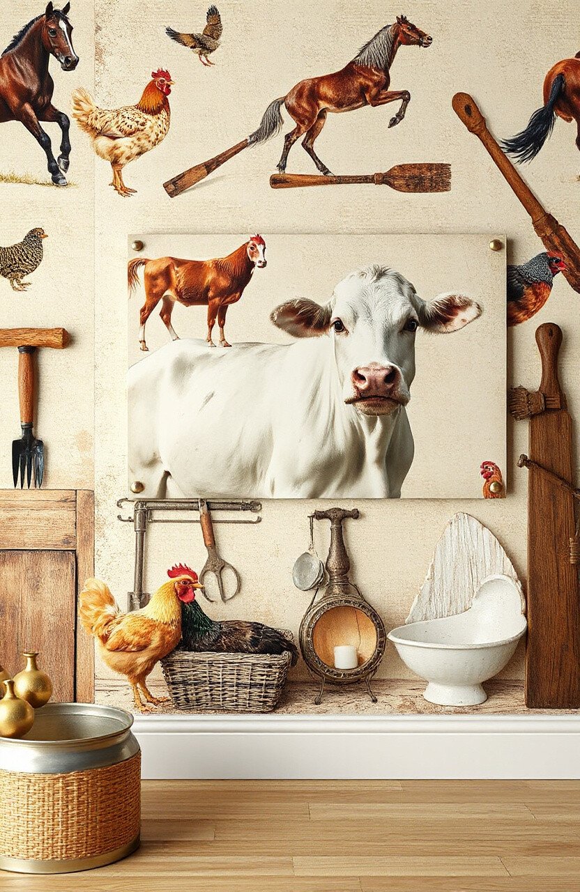 Bring the charm of the countryside inside with farm animal wallpaper. Picture cows, chickens, and horses set against a rustic background. It’s like having a little piece of a farm in your home.