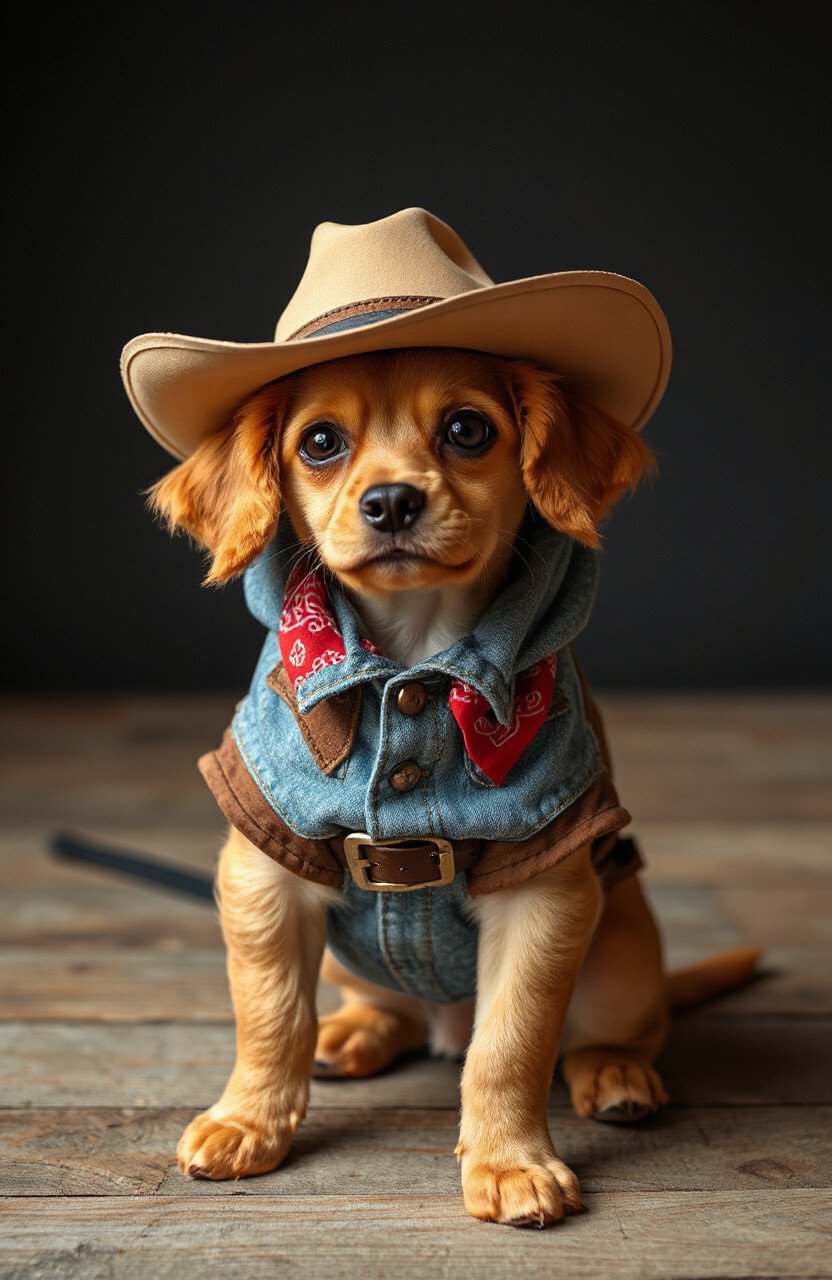 Saddle up and head out west with a cowboy-themed hoodie. Bandanas, denim, and cowboy hats make this style perfect for the adventurous pup.