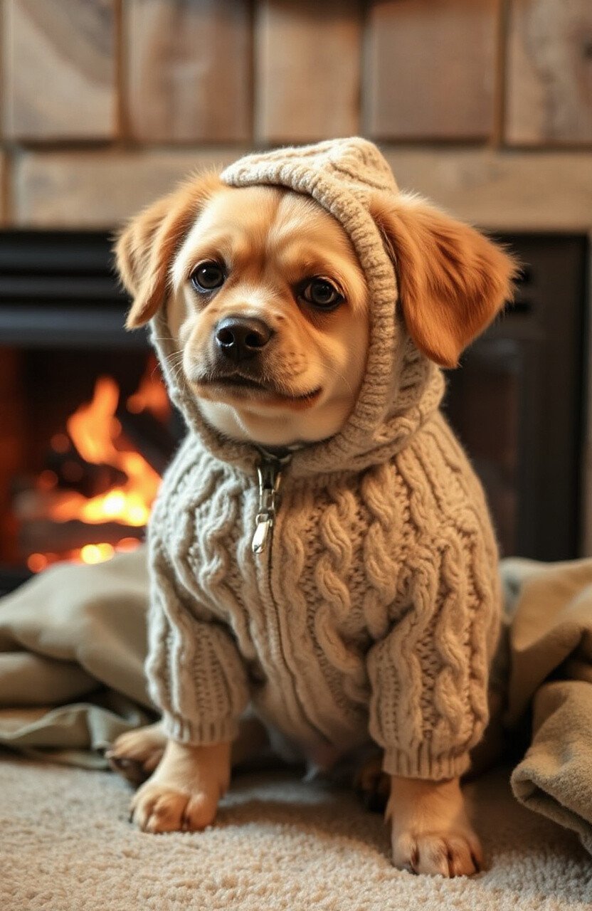 Picture a cozy evening by the fireplace with your pup snuggled up in a cable knit hoodie. This option is all about warmth and comfort, perfect for chilly days. It’s like a warm hug for your furry friend.