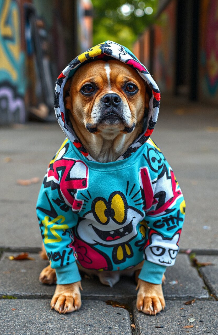 Graffiti hoodies are great for city pups who love to make a statement. They’re perfect for a walk in the park or a day out on the town.
