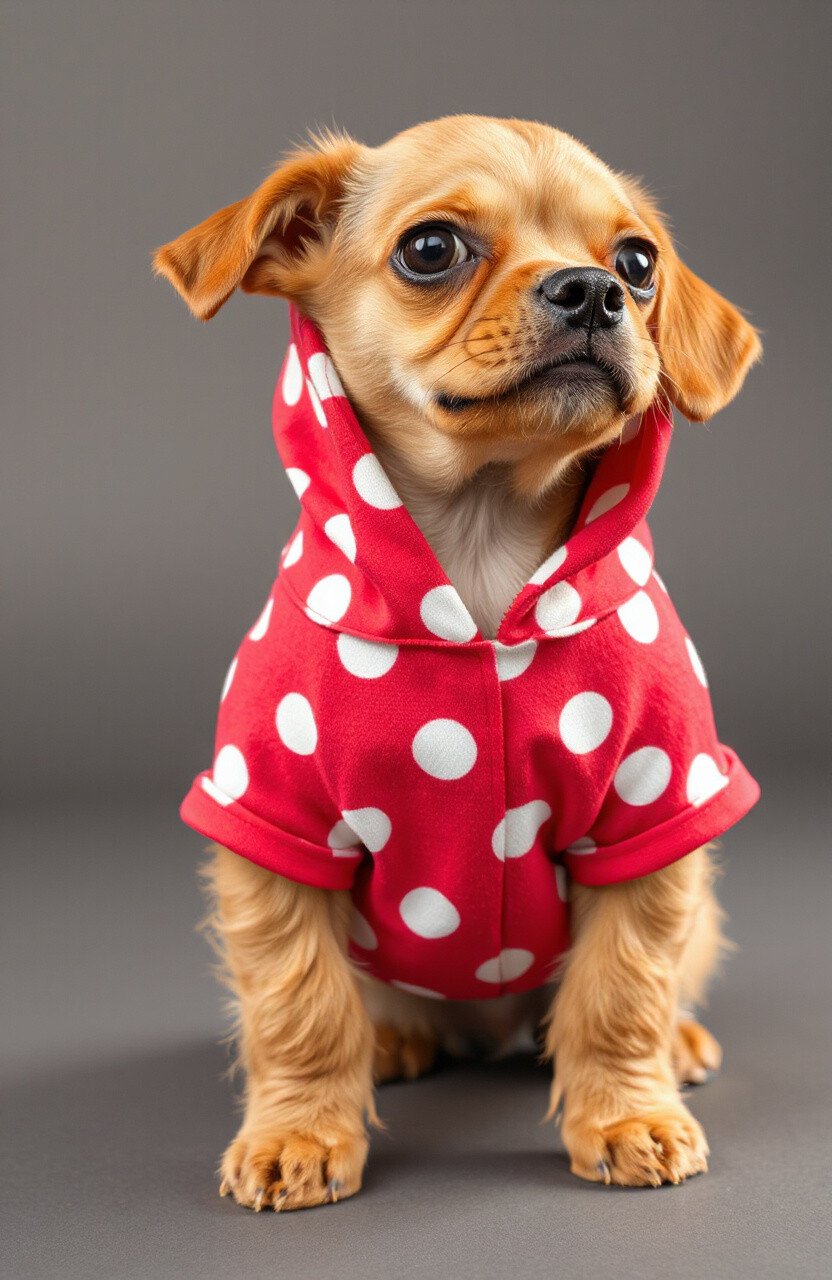 Bring a touch of whimsy to your pup’s wardrobe with a polka dot hoodie. This playful pattern is perfect for pups who love to have fun and spread joy wherever they go.