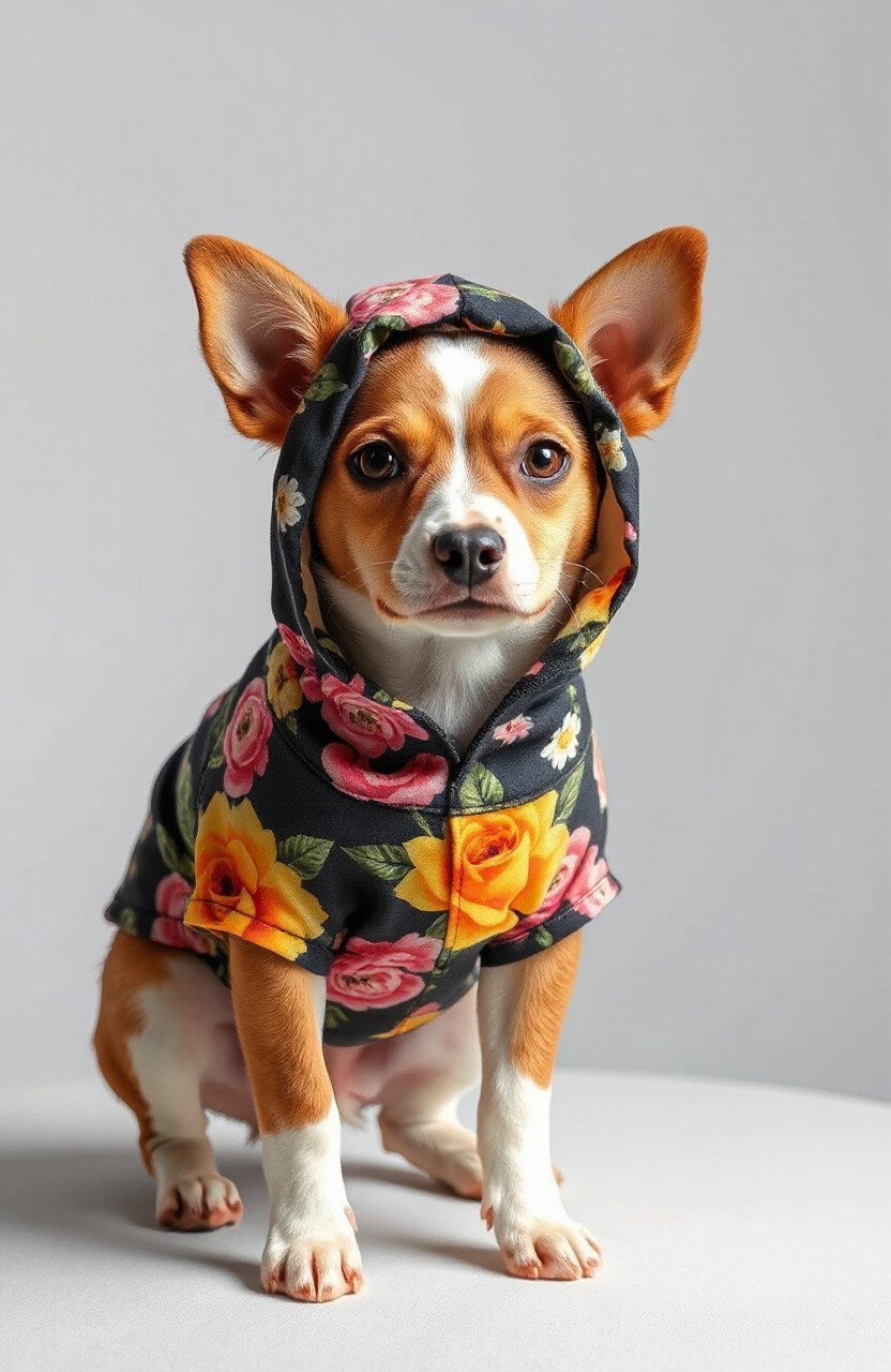 Embrace the beauty of nature with a floral hoodie for your pup. This style is perfect for those who love a touch of whimsy in their wardrobe. It’s like a little garden for your pup to wear.