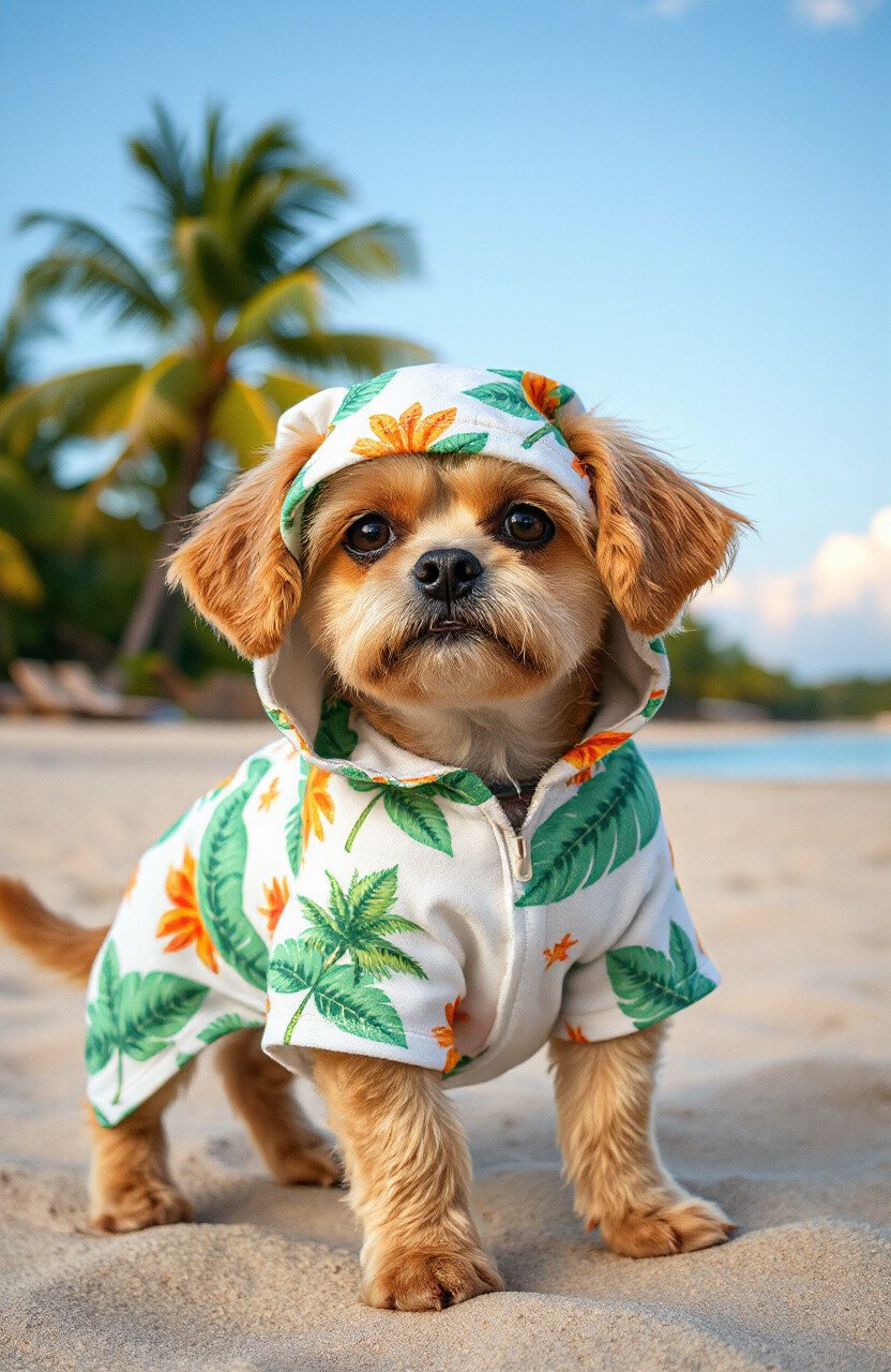 Bring a touch of the tropics to your pup’s wardrobe with a tropical-themed hoodie. Bright colors, palm trees, and tropical patterns make this style perfect for summer.