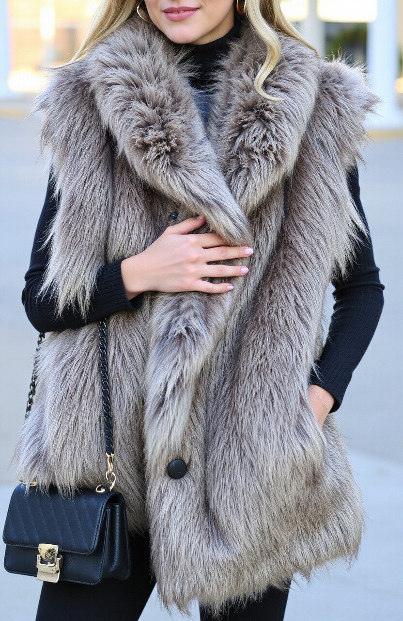 Get ready for the runway with the Luxe Faux Fur Vest. It’s all about glamour and warmth, perfect for chilly nights.