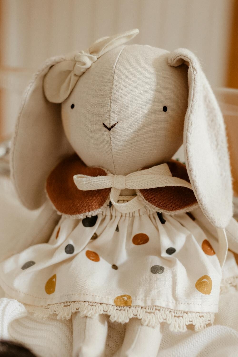 Bunnies are symbols of spring and new beginnings, and a bunny plush is a timeless favorite. Use soft, fluffy fabrics and add long ears and a fluffy tail.