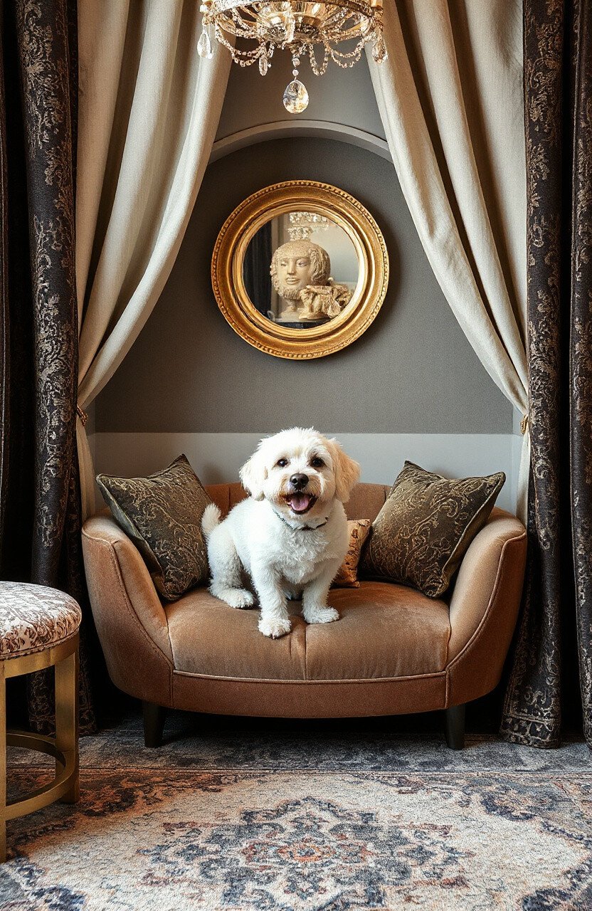 Indulge your pet with a touch of luxury. Use plush fabrics, ornate patterns, and gold or silver accents to create an opulent nook.