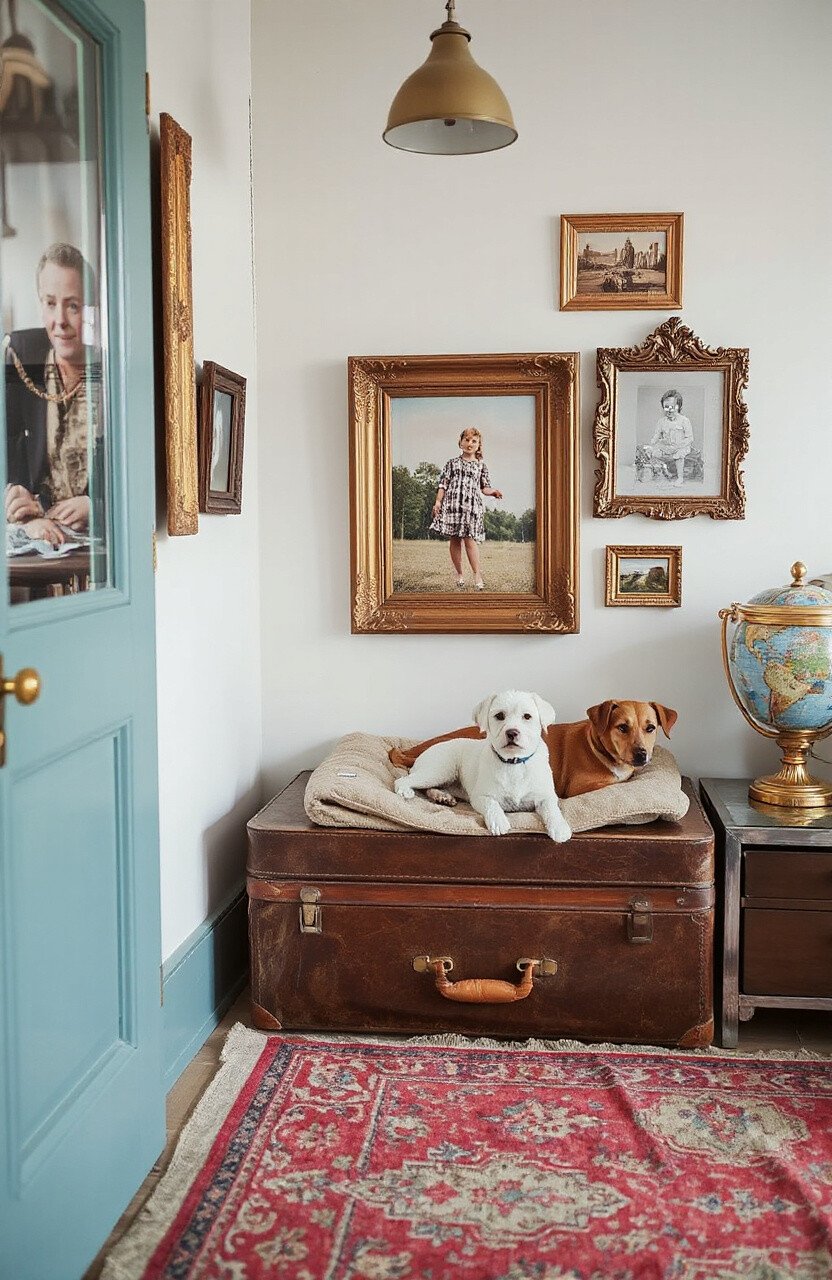 Transport your pet nook back in time with vintage-inspired decor. Think old suitcases repurposed as pet beds, antique frames for photos, and retro fabrics.