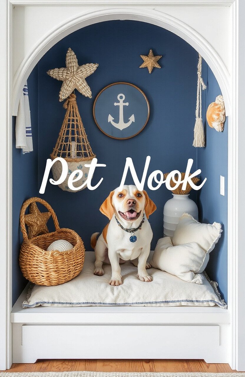 Bring the seaside to your home with a nautical-themed pet nook. Use shades of blue and white, rope accents, and seashell decorations.
